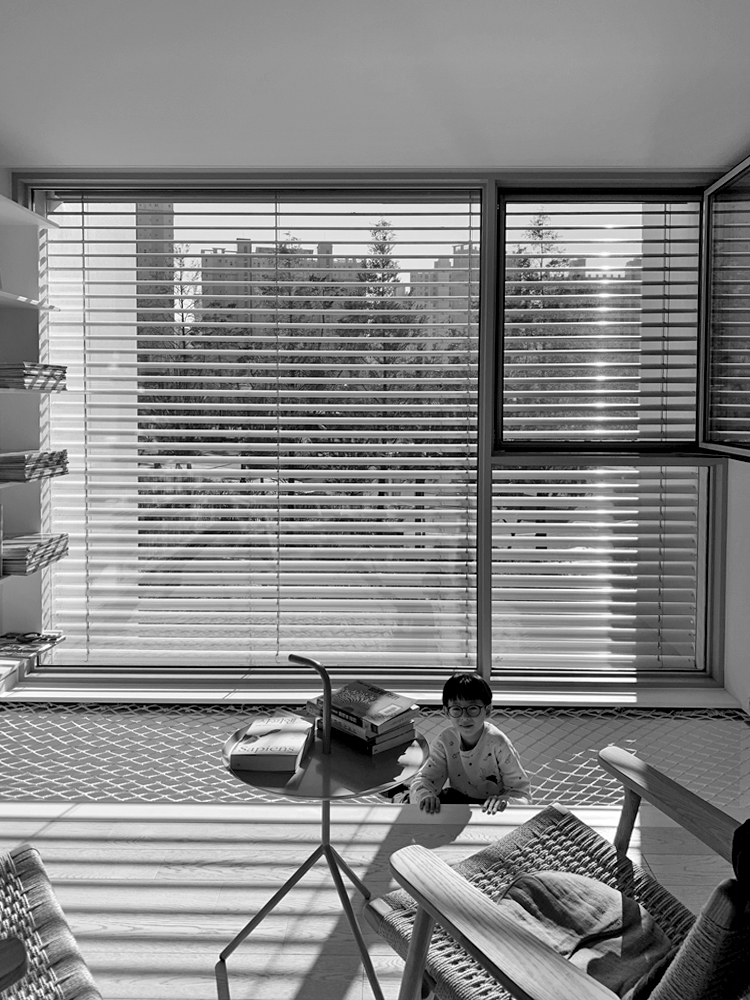 외부 블라인드와 버티컬 처마가 조리개가 되어